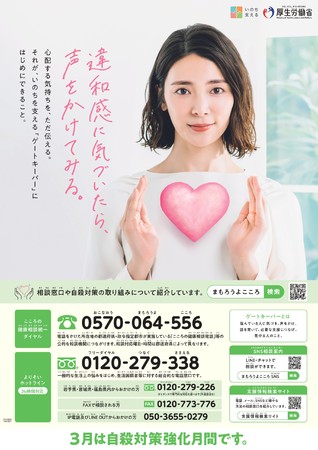 厚生労働省(所在:東京都千代田区)は、3月の「自殺対策強化月間」に合わせ、自殺対策に関する国民の理解を深めるための啓発活動や、悩みを抱えた人に対する各種相談事業の周知活動を強化しています。