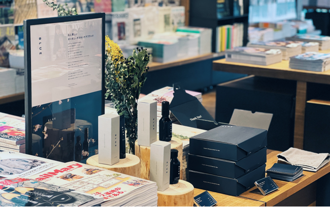 BLUE(株式会社GRIT 代表:山本恭裕)は、オンライン中心に販売をしておりましたが、実際に製品を手に取り、香りやテクスチャー、肌触りを体験したいというお客様の声を受けて2022年3月10日(木)から代官山 蔦屋書店にて、フェアを開催しております。