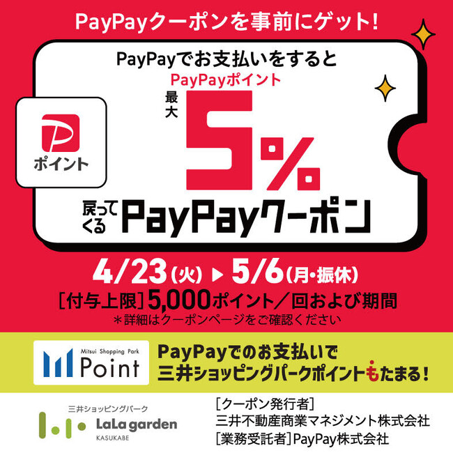 ゴールデンウィークスペシャル企画PayPayポイント 最大5%戻ってくるPayPayクーポン