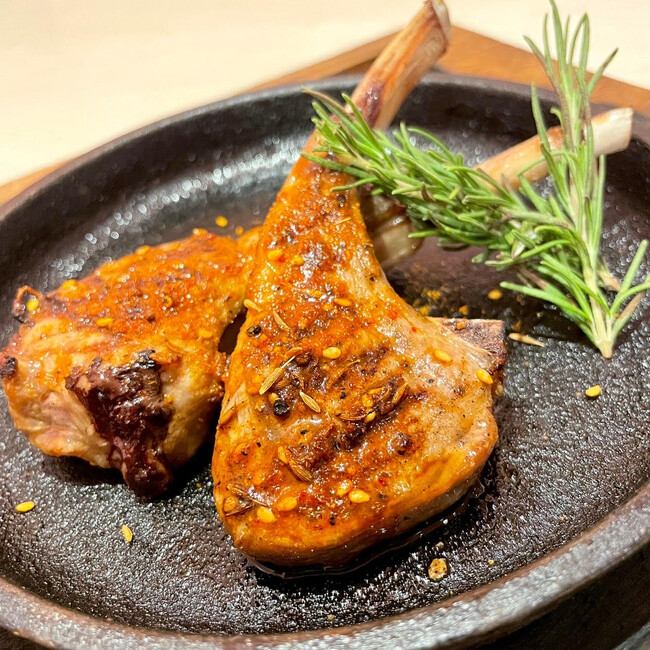 ●商標登録取得済みの「スパラム」は、20種のスパイスをブレンドして作るラム肉の料理です。