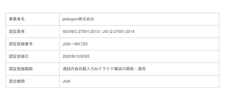 これにより、pickuponの情報セキュリティへの取り組みが国際規格に適合していることを第三者機関に認められたことになります。