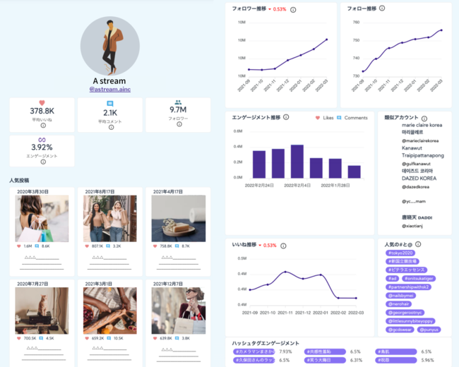 これまで手作業で行っていたインフルエンサーの発掘時間が1/3に軽減されるだけではなく、よりペルソナに近いフォロワーを抱えるインフルエンサーを抽出できることがA streamの魅力となっております。