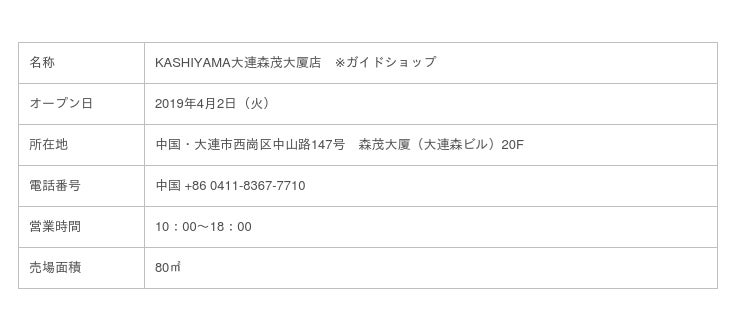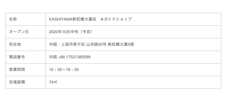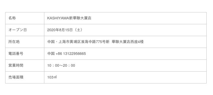 上海2号店となる「KASHIYAMA新虹橋大厦店」は、日本企業が数多くオフィスを構える虹橋経済開発区に位置し、現地企業にお勤めの方々だけでなく、日本からのビジネスマン・ウーマンに向けても、ブランドの世界観を発信していくリアルタッチポイントです。