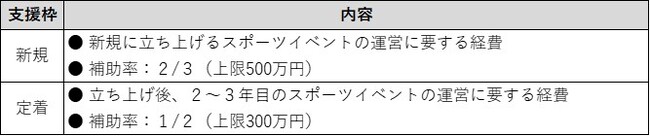 1. 全国の法人、団体等、スポーツイベント主催者を対象にする(予め種目の限定は無い)
