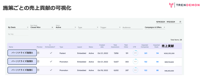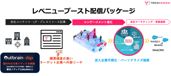 ABMソリューションを代表するTRENDEMONはこの度、BtoBマーケティング施策の「売上貢献」可視化と購買確度の高いターゲット企業へのアプローチを可能にするレベニューブースト配信パッケージを正式に提供開始致します。