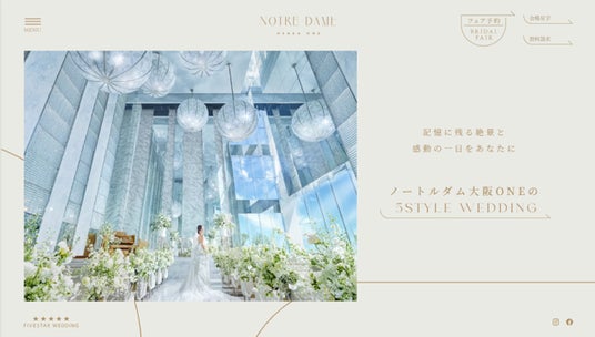 ロケーションや、美意識を詰め込んだここにしかない上質なデザインの大聖堂や披露宴会場。結婚式を彩るこだわりの料理やオリジナルドレスなど「FIVESTAR WEDDING」の魅力を凝縮し、視覚的にわかりやすいトップページとなりました。おふたりの結婚式を思い描きながら、楽しく情報収集をしていただけます。