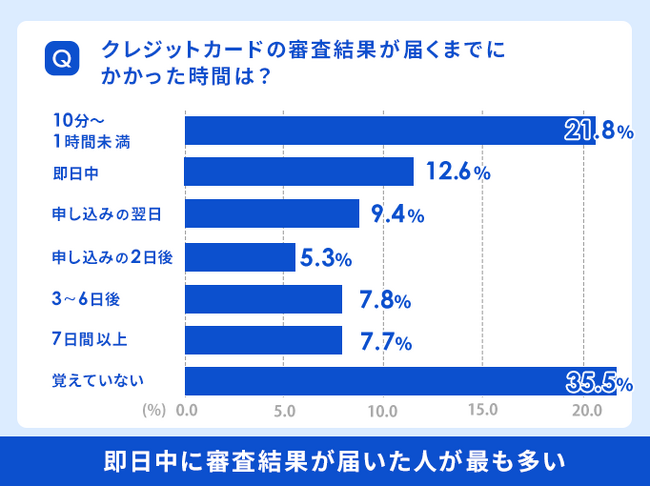 クレジットカードの審査結果は『即日中』に届くという回答が多い