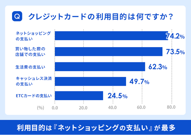クレジットカードの利用目的は『ネットショッピングの支払い』(74.2%)が一番多い