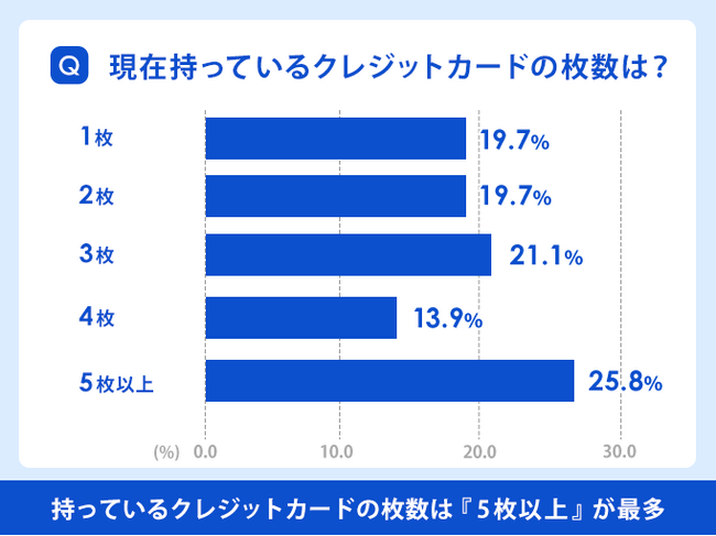 クレジットカードは『5枚以上』持っているという回答が25.8%と一番多い