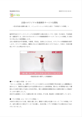 見出しが簡潔で分かりやすく、かつ「令和版ラジオ体操」という言葉もキャッチです。本文も平易な言葉で1文が長くなりすぎず、何を伝えるリリースなのかを一目で確認することができました。冒頭の体操写真も体操の雰囲気をよく伝えています。背景などもしっかり盛り込んでいるものの、分量は読み疲れない適量で最後のサービス紹介の箇条書きも簡潔でした。