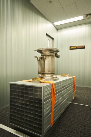 エントランスを開けると真っ先に目に入るのが、ロケットエンジンです。ZEROの燃焼試験で使われたエンジンのプロトタイプ実物を設置し、壁面は軽量鉄骨で資材感を出しました。日本の今後の成長産業となる民間宇宙産業で進む、ものづくりの現場を体感いただける設えとしました。