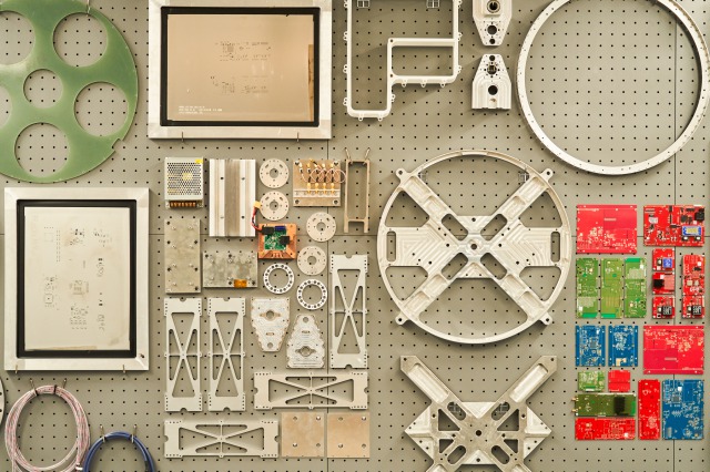 エンジンの推力を機体に伝えるジンバルプレートや電子基板など、これまでの開発・製造の歴史を伝えるロケット部品を壁面一面に展示しました。インターステラテクノロジズの「熱量のカケラ」をたくさん詰め込んでいます。