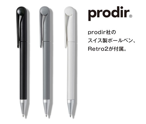実用性の高い2mm方眼罫のメモ用紙と、なめらかな書き味と耐久性に定評のあるスイス・prodir社製ボールペンのセットです。
