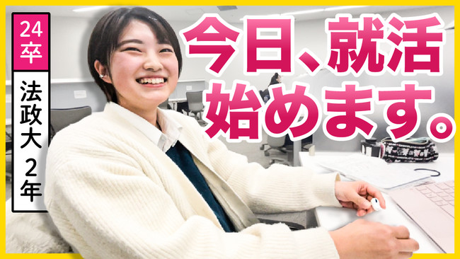 24卒で、就活を始めたてである法政大学キャリアデザイン学部2年生 石川七美さんが一貫して出演をする予定です。就活知識を得て、経験を積んでいきながら内定獲得に向けて成長していく姿に密着します。