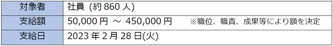 パート・アルバイト従業員へは、定期賞与を2023年1月31日に支給しております。この定期賞与は毎年1月と7月に支給しており、今後も継続いたします。