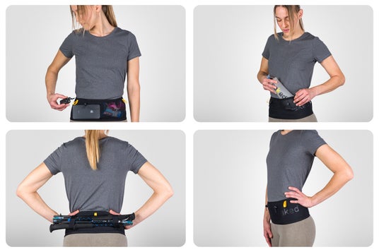 使用方法は簡単 - バンドに足を踏み入れ、上にスライドさせて腰の上にフィットさせます。内部は容量の同じ3つのポケットに分かれており、フラスク、エナジージェル、サングラス、ヘッドランプなど必要な装備を一度に持ち運ぶことが可能です。収納時はポケット上部のプルタブを引くことでグローブ装着した状態でも用意に開閉が可能。メインのポケット以外にも背面に2本装備されたシリコンループにより、トレッキングポールや丸めたレインシェルなども携行が可能です。