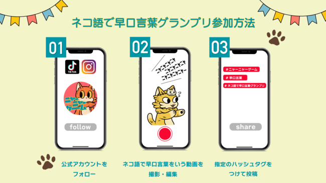 ニャーニャーゲームのアカウントをフォロー&指定のハッシュタグをつけて動画を投稿すれば応募完了!