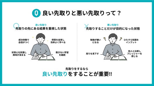 RISU Japanは先取り学習自体が良い悪いという判断をするのではなく、「良い先取り」と「悪い先取り」の違いを見極めることが重要だと考えています。