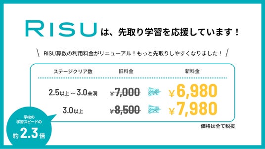 RISU算数は先取りしやすい料金体系に変更いたします。