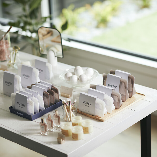 使い捨てプラスチックバッグの代替品としてアメリカで生まれたシリコーンバッグ「stasher(スタッシャー)」より、コスメアイテムの収納にお勧めしたいキルティング加工のNEWデザイン「BEAUTYコレクション」が仲間入りしました。