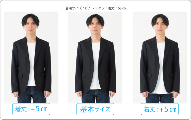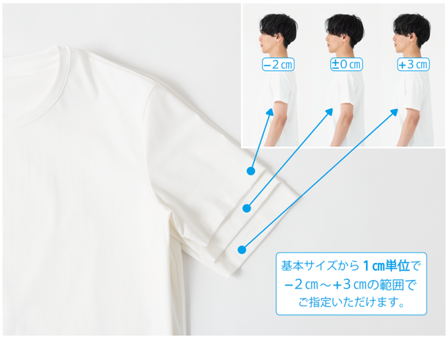 基本サイズより-2cm~+3cmの範囲のなかで1cm単位の長さを指定することが可能