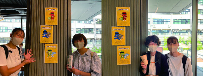 この度の取り組みは、環境に配慮したリユースカップを採用するだけでなく、カップに環境破壊の影響を受けて悲しんでいる亀のデザインを印刷するアイデアや、カフェテリア内にもキャラクターを使ったSDGs啓発ポスターを貼るなど、学生が関心を引くための様々な工夫がなされています。