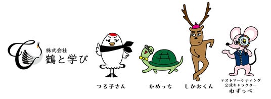 鶴と学びには、【つるこさん】【かめっち】【しかおくん】という縁起のいい動物たちを模した公式キャラクターが3人います。そしてさらに今回テストマーケティングを担当する【ねずっぺ】が登場しました。ねずみは繁殖能力が高いことから、子孫繁栄や家運隆盛など繁栄の象徴として、古来より縁起のよい動物として親しまれています。テストマーケティングした商品たちが大いに繁栄して羽ばたいていくことを願って、今日も【ねずっぺ】は「チューもく!!」と叫びます!