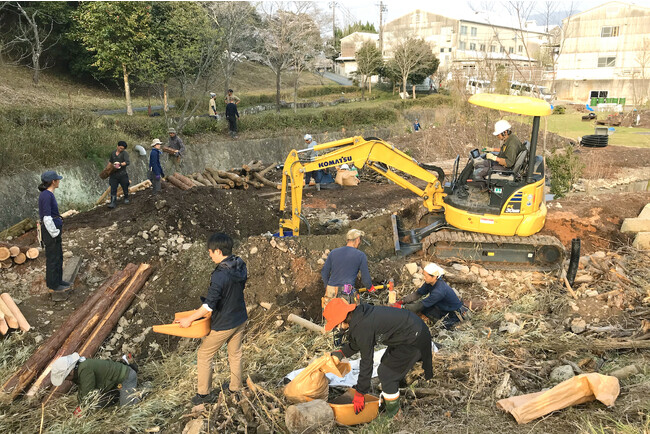 竹や木といった自然素材を活用し、コンクリートを取り壊して出た瓦礫すらも土塁などとして生かしていきます。