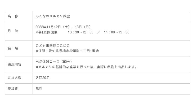 豊橋信用金庫(理事長・山口 進)は、2022年11月12日(土)、13日(日)に、豊橋市・東京海上日動火災保険株式会社と協働で実施する「SDGsフェス@TOYOHASHI」において、フリマアプリ「メルカリ」の使い方を丁寧に教える「みんなのメルカリ教室」を開催いたします。