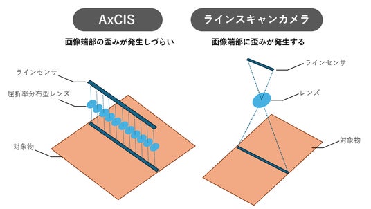 AxCISであればセンサの端部までの屈折率分布型レンズにより歪みの無い画像取得ができる上、補完画素のないセンサ構造のため、寸法計測のアプリケーションにおいて検査安定性の向上に貢献します。
