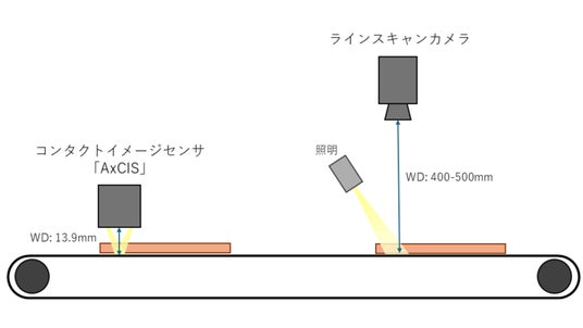 「AxCIS(アクシス)」は、Teledyne DALSAが長年培ってきたCMOSラインスキャン技術を基に開発されたコンタクトイメージセンサ(CIS)です。レンズ・照明・センサが一体化しているため、従来のラインスキャンカメラの構成と比較して、簡単にセットアップが可能です。対象物までの撮像距離が近く、カメラ取り付け位置のスペースが限られている場所への取り付けが可能です。