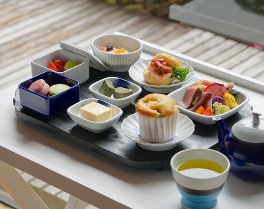 さらに、POP UP STORE隣にあるカフェ「Made in ピエール・エルメ 和多屋別荘」では、深川製磁ブルーワイナリーシリーズを使用した特別アフタヌーンティーを数量限定でご用意。美味しいスイーツとお茶を楽しむ贅沢なひとときをご提供いたします。
