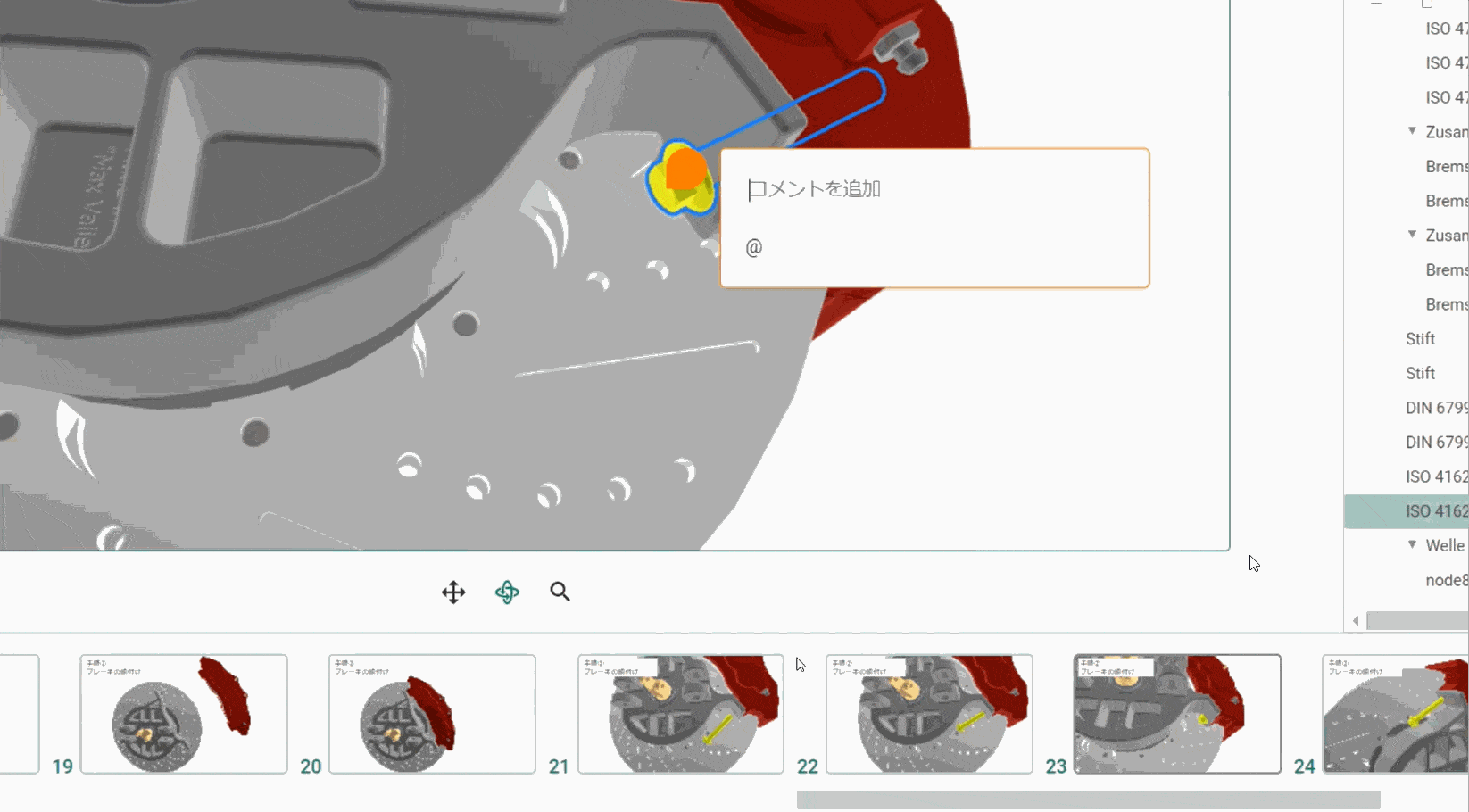 そしてBさんは、組立に問題があるポイントをいくつか見つけたので3D上にコメントを入れていきます。