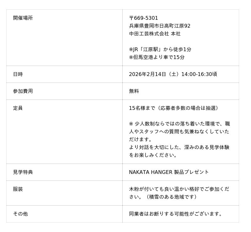 ◇NAKATA HANGER ファクトリーツアー2026 特設ページ