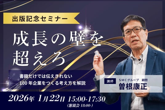 社会保険労務士法人とうかい(名古屋市・代表:久野勝也)は、SMCグループ顧問・曽根康正氏の書籍出版を記念し、「100年続く会社を作る社長の仕事」―出版記念セミナー― 成長の壁を超えろを開催します。