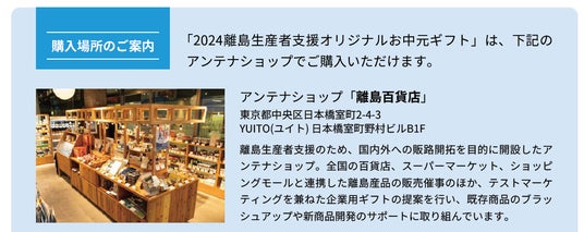 全国の離島連携に取り組む一般社団法人離島百貨店(事務局:東京都千代田区/代表理事:青山富寿生、以下「離島百貨店」)は、アンテナショップ「離島百貨店(東京都中央区)」およびECアンテナショップ「島シェア」にて、離島の特産品を組み合わせたオリジナルギフト「2024離島生産者支援オリジナルお中元ギフト」の販売を開始しました。