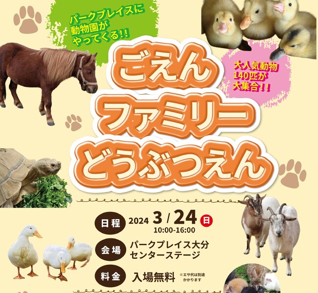 そんな中、春休み期間中に、ポニーやヒヨコなど約140匹の動物たちが集結する「ごえんファミリー動物園」を開催します。動物たちとのふれあいを通じて、命の大切さを実感していただき、親子の想い出をつくっていただきたいと考えています。また、ごえんファミリーパークにご来場いただいた先着200名様限定で特典をプレゼントする予定です。