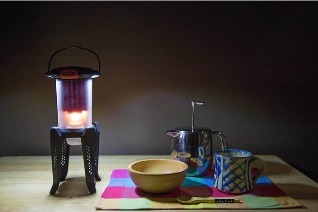 CAMPFIREにて3月24日先行割引販売開始。少燃料で長時間点灯、ロウソク1本分の明るさを約20倍に増幅、残燃料はそのまま次回に利用でき片付け簡単。