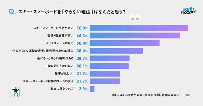 スキー・スノーボードを「やらない理由」は、「価格が高い」が圧倒的多数
