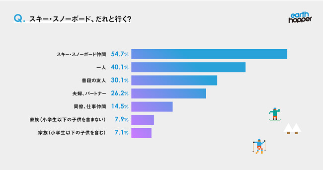 一緒に行くのは「スキー・スノーボード仲間」54.7%、「一人」40.1%