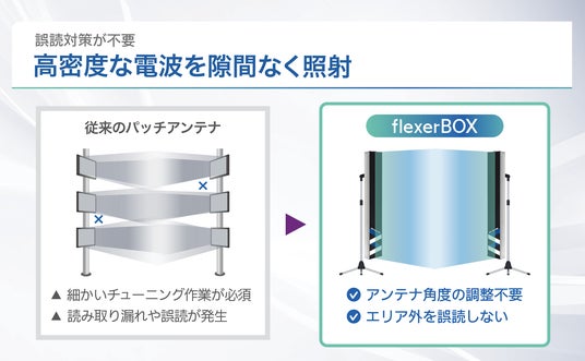 ■読み取り精度の課題を解決する「スマートRFIDアンテナシリーズ」から新ラインアップ登場。設置の自由度を高めた「flexerBOX」。