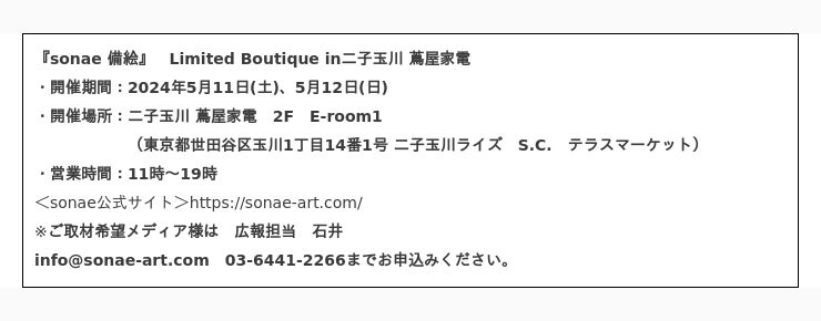 <販路> 「sonae 備絵」公式 EC サイト https://sonae-art.com/