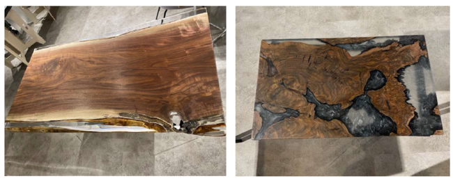 左:ウォルナットレジンテーブル( 1520×800×53 mm )