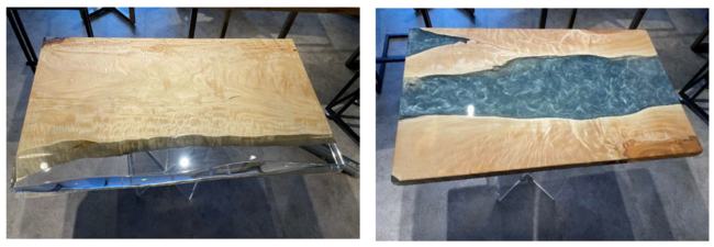 銘木とエポキシ樹脂を掛け合わせたレジンテーブル「MURUI」では、職人が1つ1つ手作業で作り上げたレジン・リバーテーブルの展示を行います。
