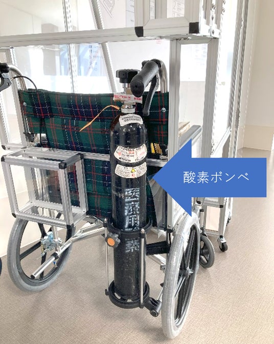 酸素ボンベの架台付きで安全に移動ができる