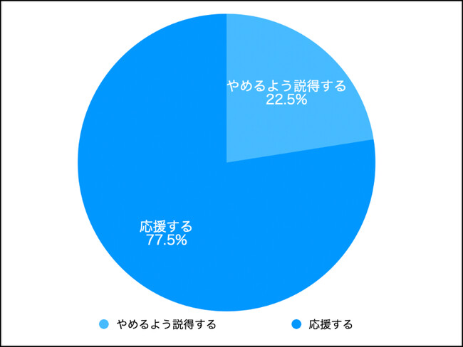 知人が選んだ道は応援したいと考える人が大半だということがわかります。