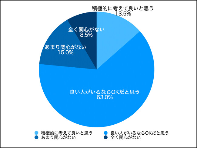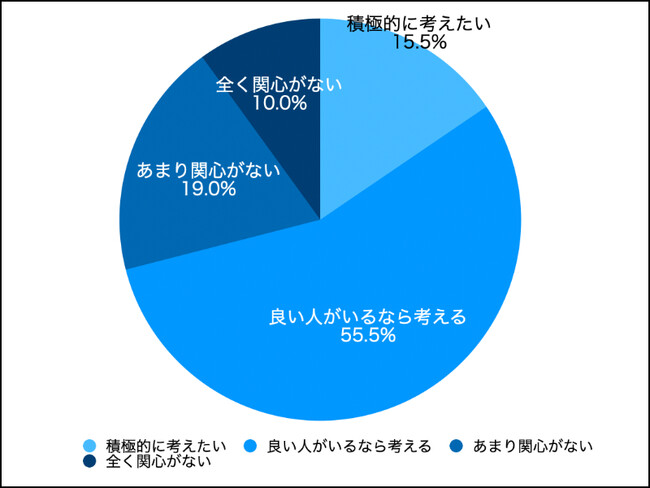 「積極的に考えたい」「良い人がいるなら考える」と肯定的な意見が71%となりました。