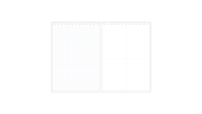 さらに「見返す」という行為に着目し、過去と現在をフレキシブルに比較・検討・再構築がしやすい仕様に。過去に戻るのではなく、過去へ進むことで未来の新しいヒントに繋がるタイムマシンのようなノートを作りたいと思いました。