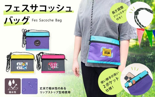 ▼フェスサコッシュバッグ2つのジップポケットを備えたフェスサコッシュバッグ(ミニサコッシュ)をお客様のオリジナルデザインでOEM製作いたします。丈夫で撥水性のあるポリエステルのリップストップ生地を使用していますので、日常使いはもちろん、フェスイベントやアウトドアシーンでも大活躍します。