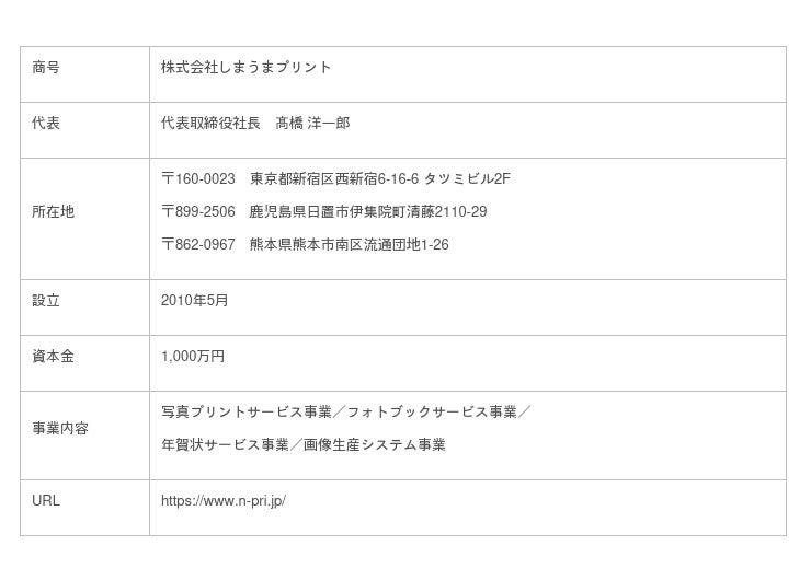しまうまプリントは「すべての想いを身近に 時をつなぐ会社になる」というミッションのもと、ネットプリント専業で「しまうまプリント( https://www.n-pri.jp/ )」サービスを運営している企業です。